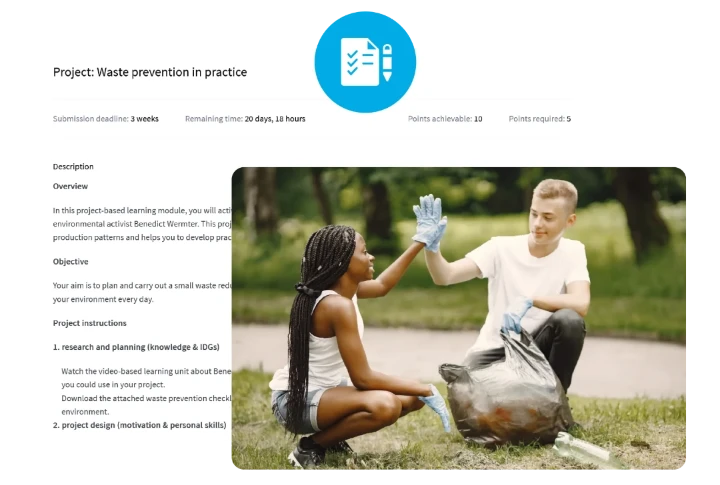 Through project-based learning such as SDGs4future, you not only acquire theoretical knowledge, but can also get directly involved in practical projects. We provide you with tasks that you can carry out on your own together with friends. If you like, you can upload your results and receive a professional assessment!
